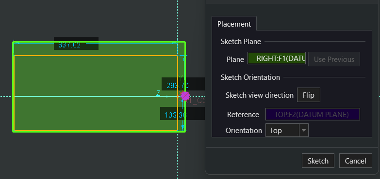 2) **모델 기하학 참조**: 3D 모델의 기하학을 참조하여 스케치를 만들 수 있습니다. 예를 들어, 3D 모델의 특정 표면 또는 엣지를 참조하여 스케치를 해당 기하학에 정렬하거나 배치할 수 있습니다.
