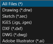 타 CAD 데이터의 파일을 가져 올수 있습니다. 대량의 선, 원의 갯수를 가져올수 없습니다, 치수선, 및 Text는 제거 해야 합니다. 가져올수 있는 데이터 타입은 아애와 같습니다.
