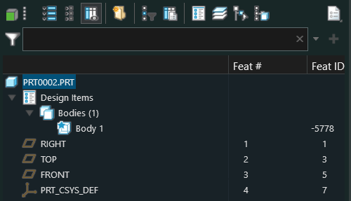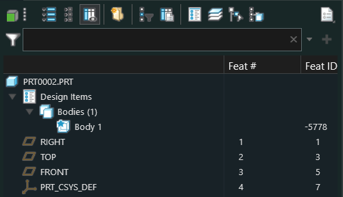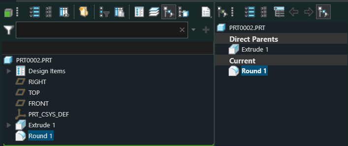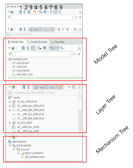 - 모델 트리 탭에는 모델의 기능과 구성 요소가 나열됩니다. Model Tree는 Creo의 작업 환경에서 생성한 모든 요소를 계층 구조로 표시하는 패널입니다. 이는 파트 환경이나 어셈블리 환경에서 만든 기하학적 요소, 기능, 제약 조건 등을 목록화하여 편리하게 관리할 수 있도록 도와줍니다. 모델 트리를 통해 요소 간의 관계와 의존성을 파악하고, 필요한 변경 및 수정을 수행할 수 있습니다.