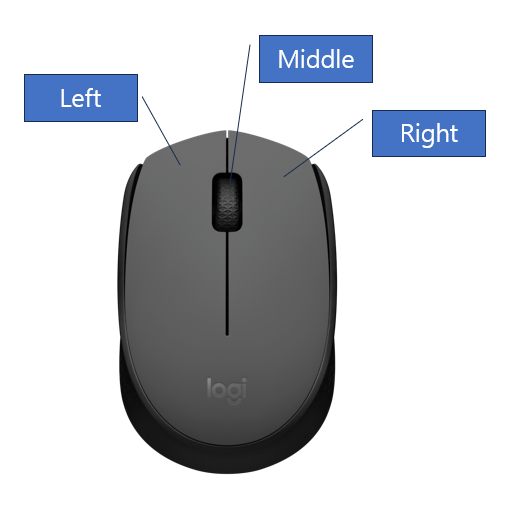 - 스크롤 휠(Middle 버튼- 아래 표시)이 있는 마우스가 있는 경우 휠을 스크롤하여 확대하거나 축소합니다.
