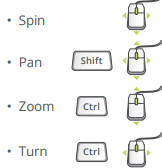 Spin, Pan, Zoom 등 객체를 보는 방법은 다음과 같습니다.